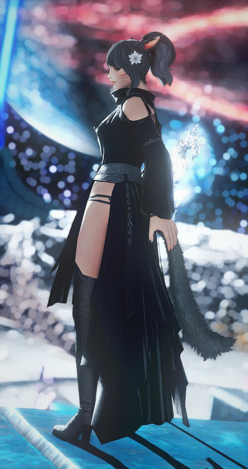 Rhaya traveled to Ul’Dah, a place her mother and her clan dislike a lot. Not enough forests, too hot deserts and a city way too big and busy. The areas around Ul’Dah are mostly populated by Seeker of the Sun clans, since they prefer the hot climate. In Ul’Dah Rhaya stumbled across Black Magic. She still got her bow, because archery was the thing she could do best, but because of her past she didn’t liked it a lot. In order to let go of her past and her interest in different kinds of magic, Rhaya threw her bow away and started Thaumaturgy to become a Black Mage. Although she was passionate about it, there were days, she struggled with her new passion a lot. Mastering black magic wasn’t as easy as mastering archery for her. But when she met her fate as a Warrior of Light, she decided to walk this path as a Black Mage.